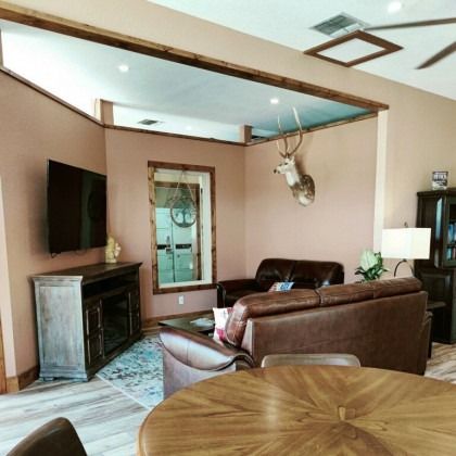 Located next to the pool, the Venue has a full-size kitchen that's available for all our guests to use, a pool table, multiple comfortable seating areas, and a TV. Our guests are welcome to use the Venue for a family gathering or just a place to sit and relax.